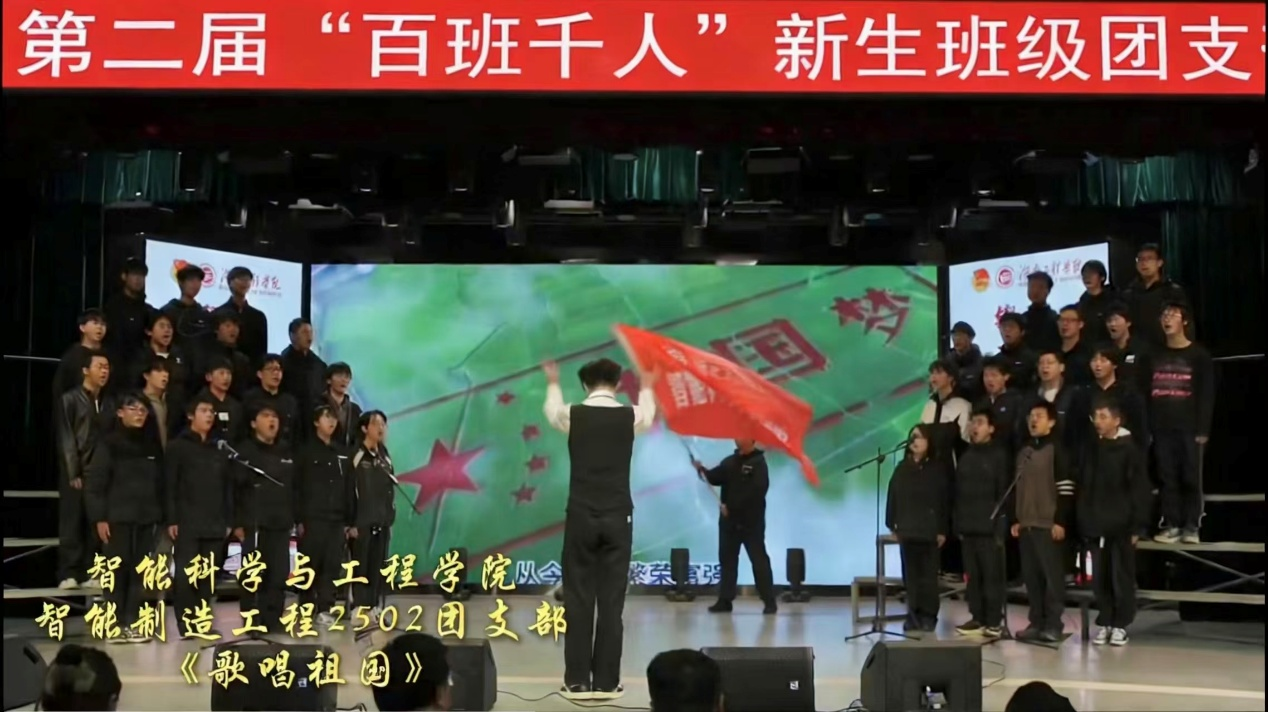 歌声嘹亮颂祖国,青春聚力展芳华。为弘扬主旋律、凝聚青春力量,我校第二届“百班千人”新生班级团支部合唱比赛决赛于12月16日晚在主校区学生活动中心圆满落幕。智能科学与工程学院智能制造工程2502班团支部凭借精心筹备与出色演绎,以一曲《歌唱祖国》斩获二等奖,充分展现了学子团结向上、爱国奋进的精神风貌。