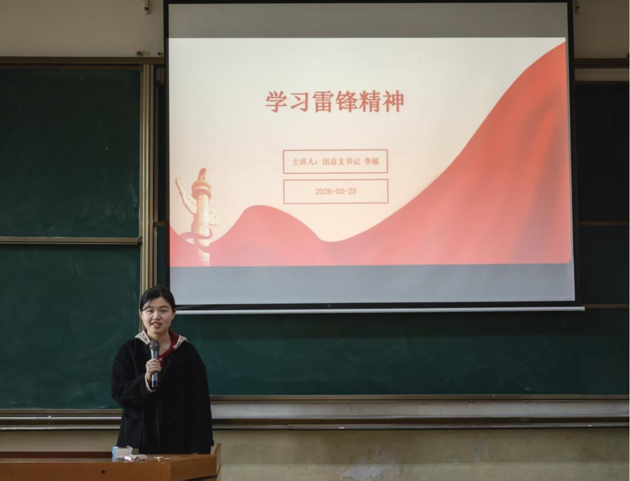 随后,她以学习雷锋精神为主题开展团课讲授,深入解读雷锋精神的核心内涵与新时代背景下的价值意蕴,系统阐述了新时代大学生践行雷锋精神的实践路径,引导全体学生干部以雷锋精神为行动指引,在工作岗位上不断锤炼爱岗敬业、无私奉献的优良品质,在引领学生全面发展中充分发挥先锋模范作用。